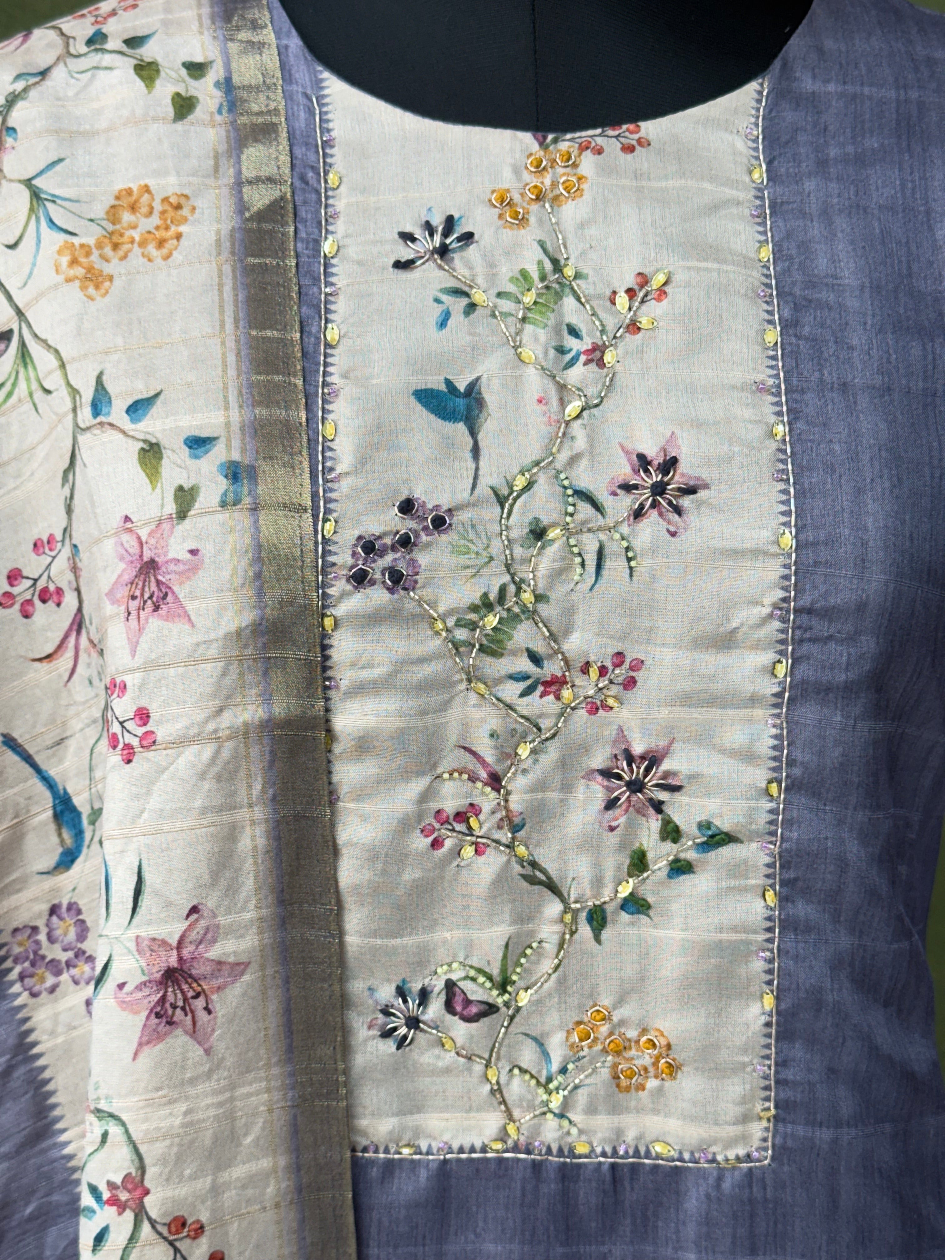 Top - Semi Silk with pure hand work neck pattern,