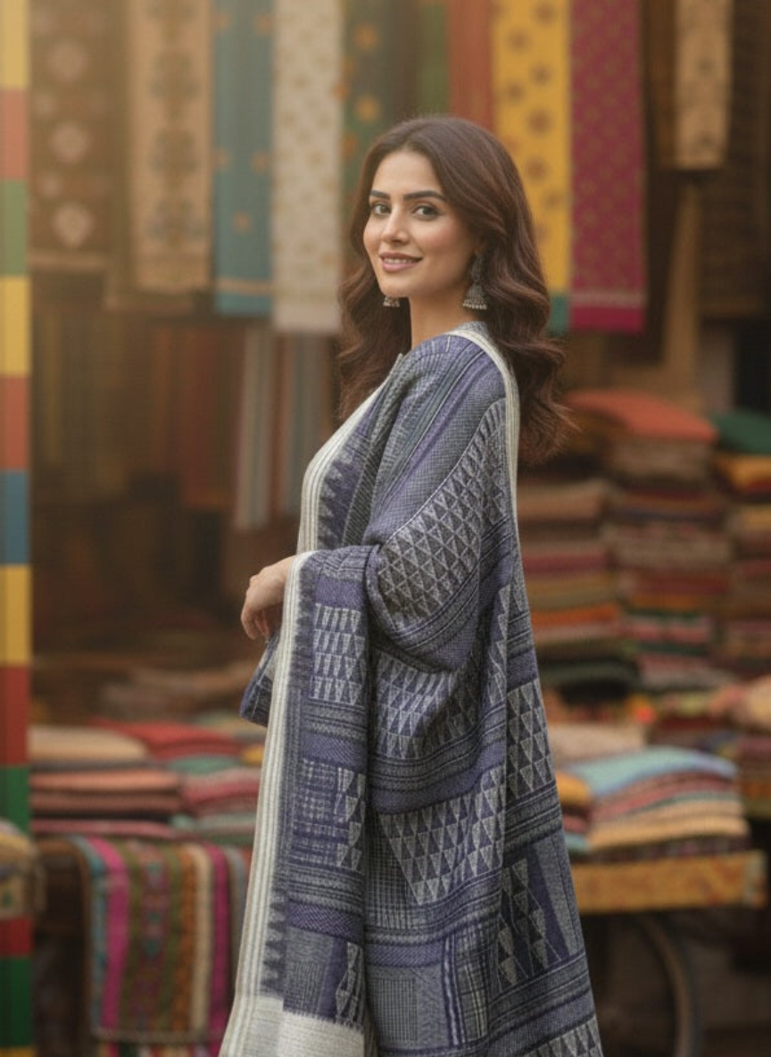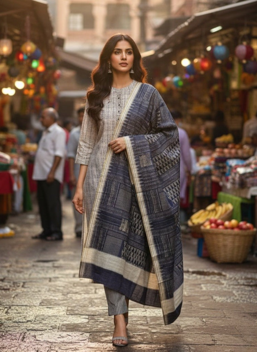 Dupatta – Handloom Semi Silk with Ombre print on it.