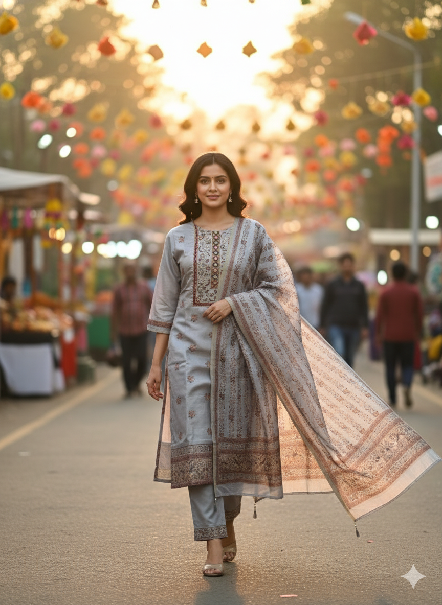 Dupatta – Handloom Semi Silk weaving and print pallu.