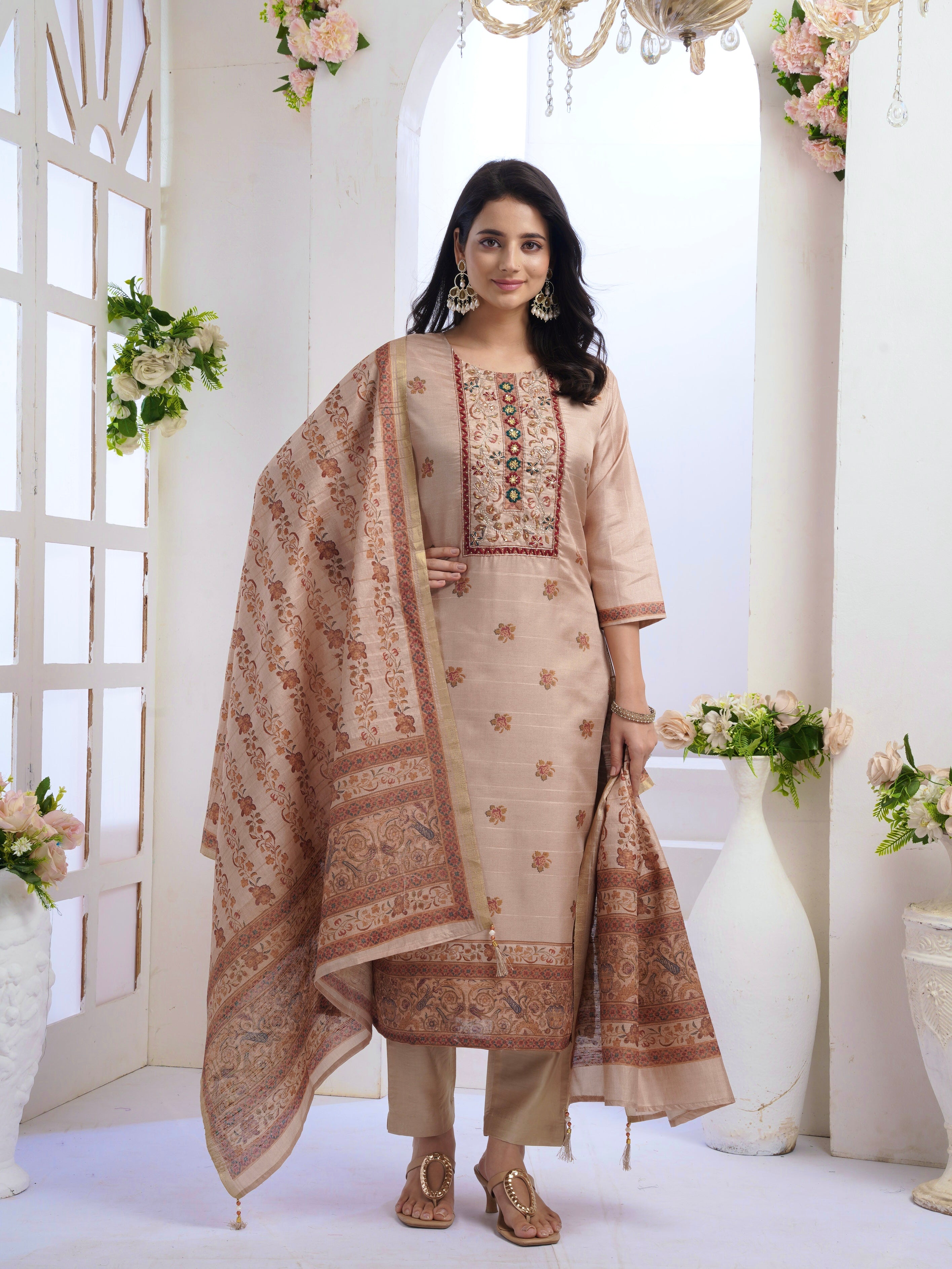 Dupatta – Handloom Semi Silk weaving and print pallu.
