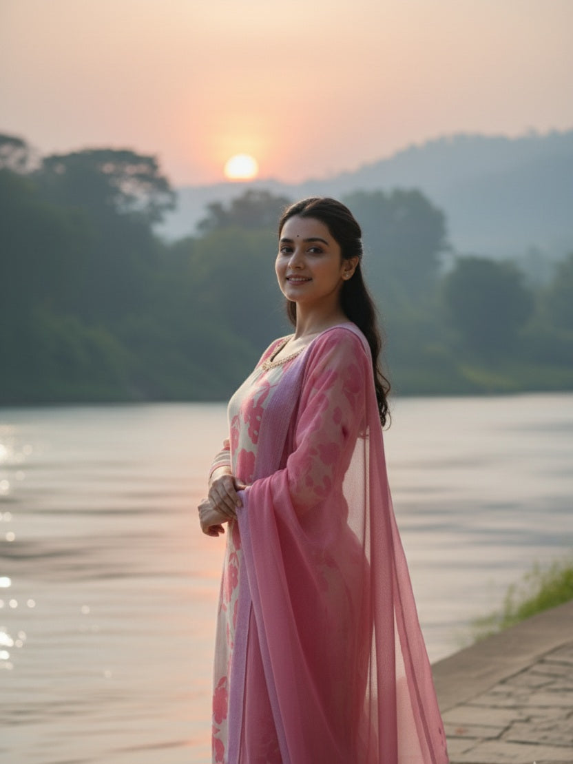 Sparkling Hot Pink Ombre Organza Ready to Wear Silk Kurti Set